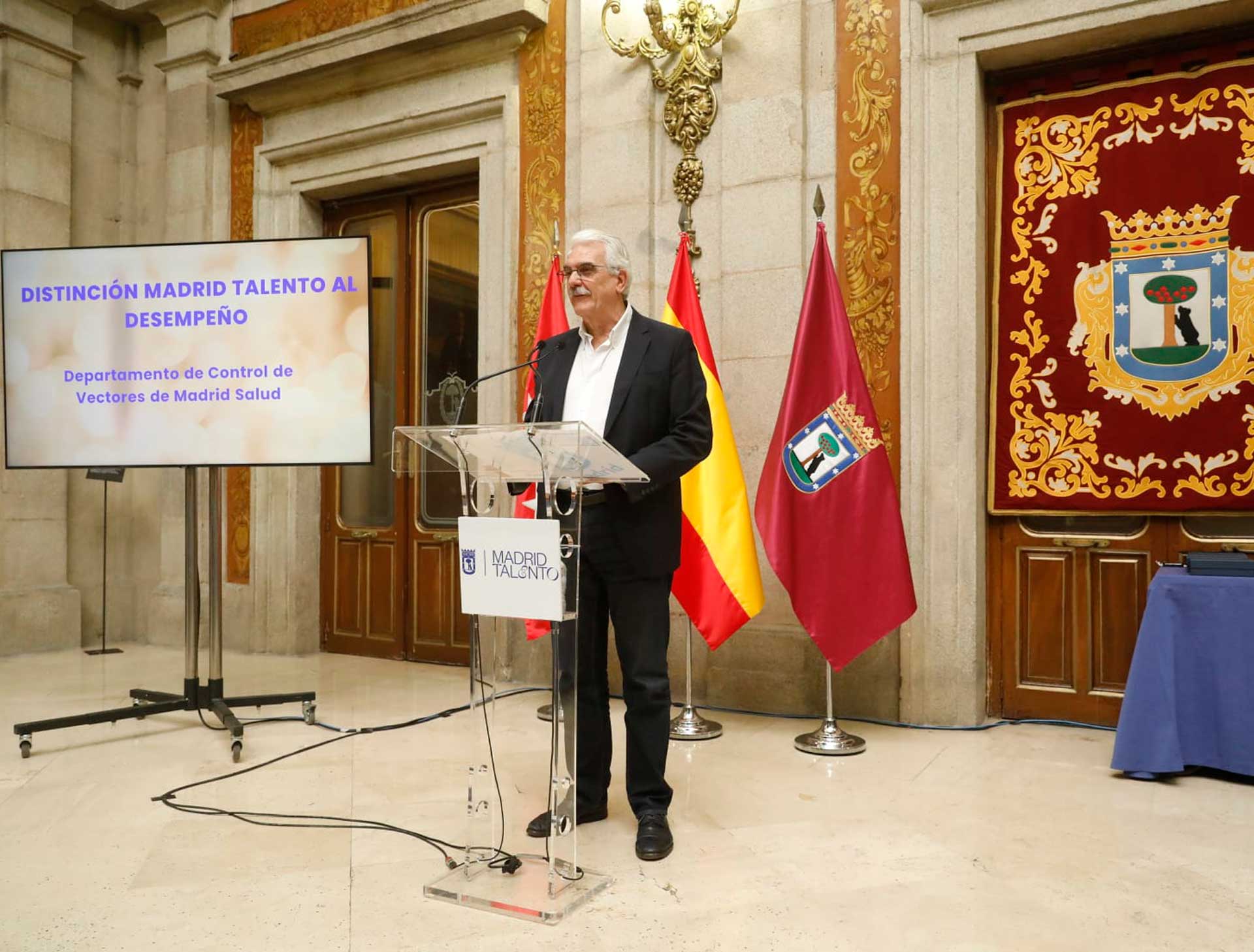 Antonio Prieto, gerente de Madrid Salud, ha recogido la distinción en un acto celebrado esta mañana en la Plaza de la Villa y presidido por la delegada de Economía, Innovación y Hacienda, Engracia Hidalgo. Han acompañado a Antonio Prieto, la subdirectora general de Salud Pública, Ana Pérez Fuentes, y una representación del equipo del Departamento de Control de Vectores.
