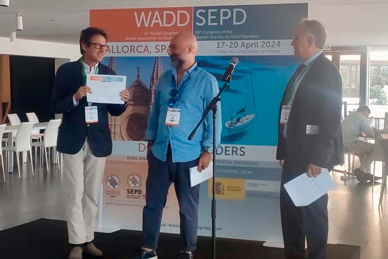 Con el nombre «Juego y Patología Dual», el Instituto de Adicciones de Madrid Salud ha recibido el Premio Accésit al mejor póster entregado por la Sociedad Española de Patología Dual (SEPD) y la World Assocition on Dual Disorders (WADD) en el 8º Congreso Mundial de la WADD y 26º Congreso de la SEPD celebrado en Mallorca del 17 al 20 de abril de 2024.