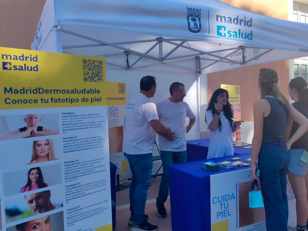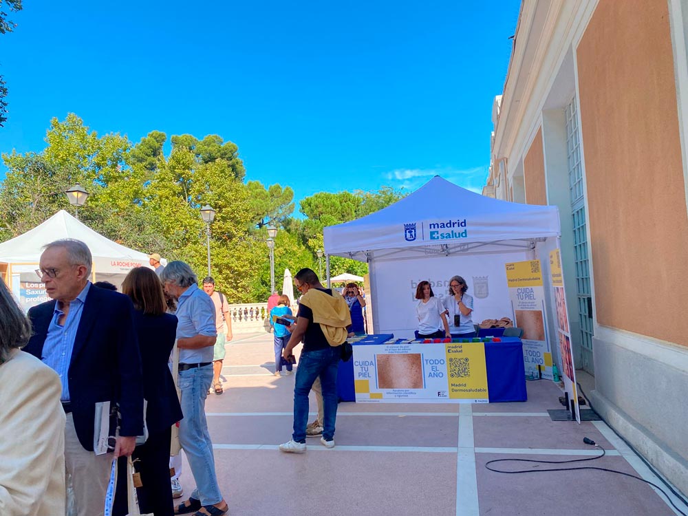 Por otro lado, y también el marco de la colaboración con la Academia española de Dermatología y Venereología y bajo el reconocimiento de “Madrid Ciudad Dermosaludable” se ha lanzado el pasado mes de junio una campaña informativa sobre los cuidados de la piel, las enfermedades cutáneas y su forma de prevenirlas. La presentación de esta campaña se realizó el pasado mes de junio con la instalación de una carpa informativa en la Plaza de Opera, que retomamos para participar en esta II Jornada de la Fundación Piel Sana