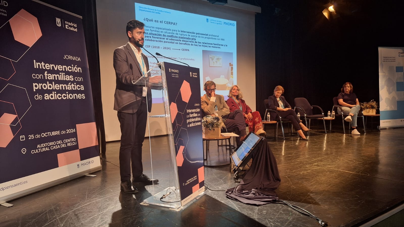 El viernes 25 de octubre de 2024 se ha celebrado en el auditorio del Centro Cultural Casa del Reloj una jornada organizada por Madrid Salud y la Dirección General de Familia e Infancia del Ayuntamiento de Madrid. El evento, enfocado en la Intervención con Familias con Problemática de Adicciones, reunió a profesionales de ambos organismos con el objetivo de intercambiar experiencias y recursos en el ámbito de la atención a familias afectadas por adicciones.