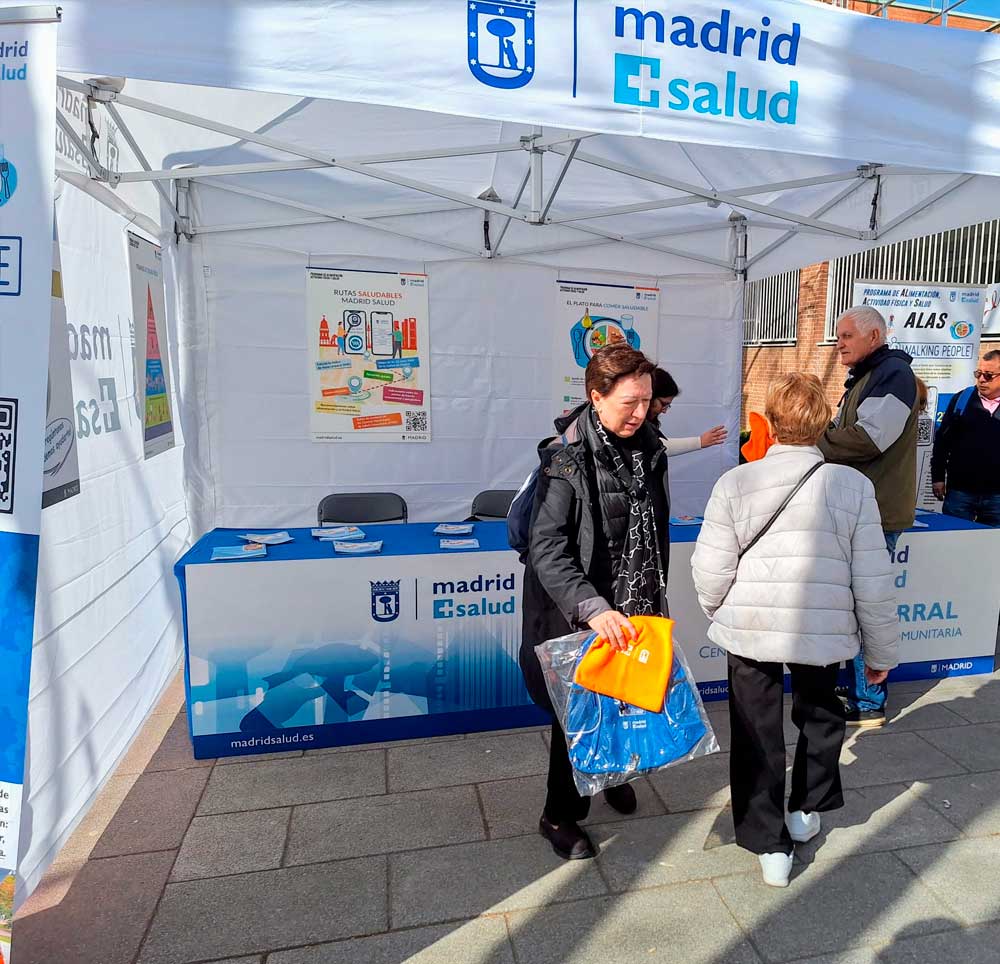 A lo largo de toda la ruta, las personas participantes han estado acompañadas por profesionales de Madrid Salud, organismo autónomo del Ayuntamiento de Madrid, y de Atención Primaria. Pero antes de ponerse en marcha se han acercado a la carpa instalada en la entrada del CMSc para recoger el avituallamiento que les ha facilitado Madrid Salud, así como información sobre el Programa de Alimentación, Actividad Física y Salud (ALAS) y el plano de todas las rutas saludables de la ciudad.
