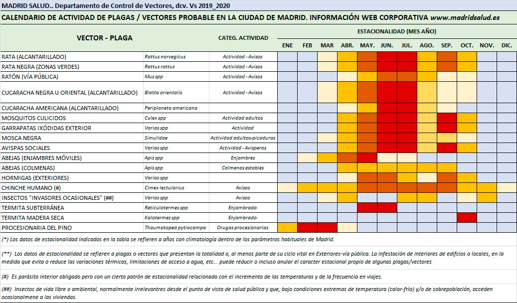 y vectores en la ciudad de Madrid