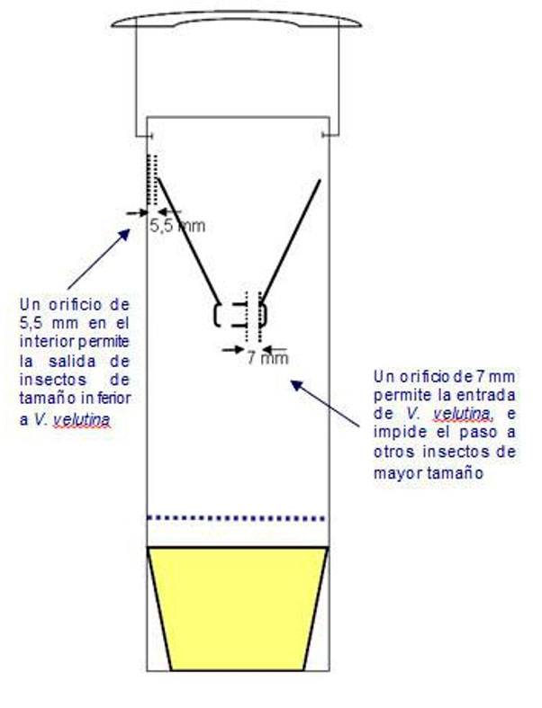 Diagrama de construcción de trampa de captura-control para Vespa velutina. (Gobierno Vasco; Departamento de Medio Ambiente y Política Territorial; 2014). Este tipo
