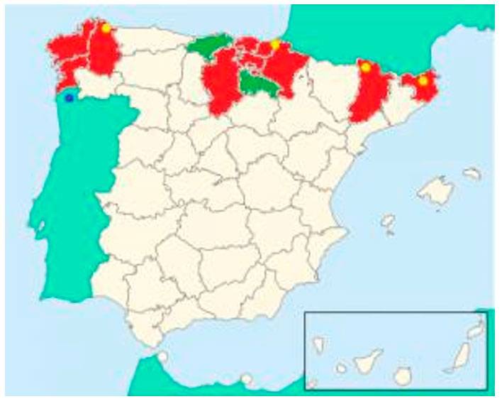 Distribución de casos detectados en España; actualización a 16/10/2013.