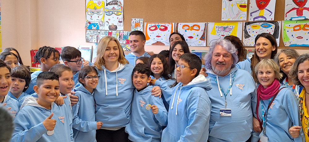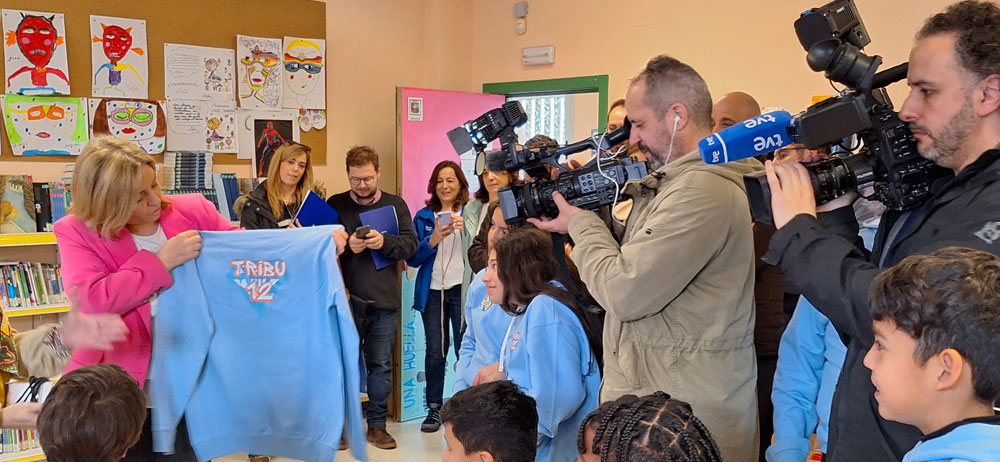 “El nombre de ‘La Tribu del 12’ hace referencia a la edad de cambio en todos los ámbitos, en torno a la cual los chavales suelen ser captados por estas bandas, tras evidenciarse que la edad de contacto con estas se da cada vez en edades más tempranas”, ha explicado Sanz, nombrada miembro honorífico del grupo, por lo que ha recibido una sudadera con el logo del proyecto, diseñado por los niños. Posteriormente ha presenciado una yincana relacionada con esta iniciativa y sus objetivos (con carpas para abordar la importancia de la familia, el respeto y la confianza, para reflexionar sobre la soledad no deseada, la asertividad, etc.).