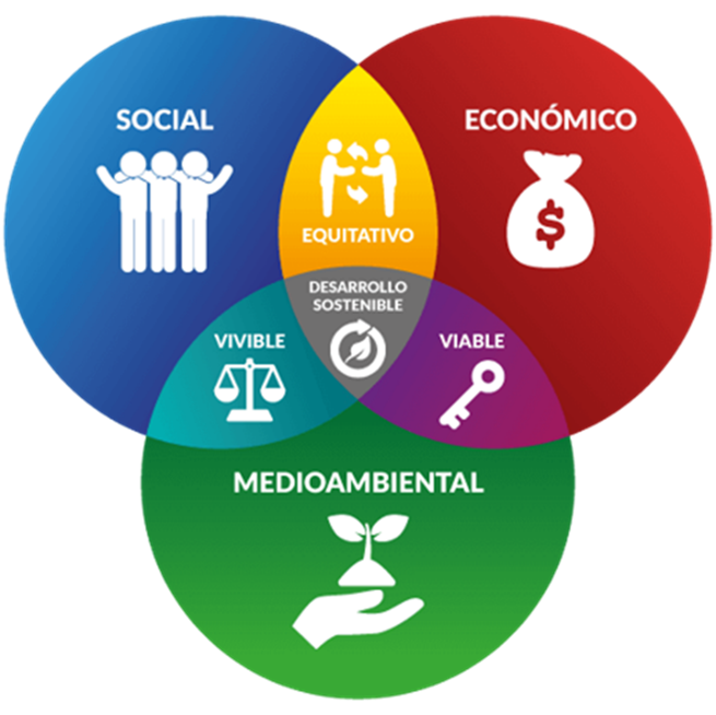 El desarrollo sostenible nació como respuesta a la insostenibilidad del modelo de crecimiento y sus tres pilares fundamentales desde el inicio son económico, social y ambiental. Así mismo, la interacción de estos tres pilares establece que para que el desarrollo sostenible sea posible este debe ser viable, equitativo y vivible.