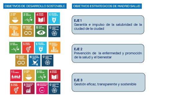 En consonancia con el compromiso que Madrid Salud ha adquirido con la sostenibilidad, los objetivos estratégicos de Madrid Salud están alineados con aquellos ODS que tienen relación con nuestra actividad